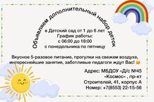 Объявляем дополнительный набор деток в Детский сад от 1 до 6 лет 10.04.2026