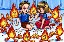 2. Не оставляйте в доступных для детей местах спички, зажигалки и иные средства зажигания.3. Не позволяйте детям играть вблизи строек, подвалов, на чердаках, в чуланах, где может быть много горючих и легковоспламеняющихся веществ.