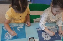 Рисование в нетрадиционной технике (губка, трафарет, деревянная палочка или оборотная сторона кисти).Цель: упражнять детей в умении рисовать разными материалами; учить создавать композицию; развивать эстетическое восприятие, мелкую моторику