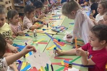 "Солнечные лучики" сегодня рисовали совместную работу: «Солнышко и пчёлки» с элементами аппликации, ведь наши ребята такие же солнечные как и их работа, так как у нас сегодня день желтого цвета!!!