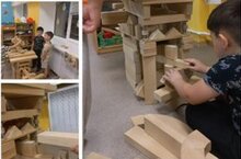 всю неделю ребята строили здание, дополняли разными деталями,переделывали. Дополнили на крыше летающий объект, пушку перед входом. На балконе даже появился тигр..значит так задуманное. Наблюдать было интересно.