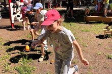 Спросите у "Солнечных лучиков", они вам точно подскажут: научат играть в "Цепи, цепи кованны" или же игры с водой, а может вовсе по душе придётся рассматривание насекомых, ну и без мяча никуда в жаркий летний день. -