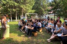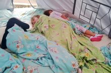 При хорошей погоде ребята спят в шатрах: вдалеке от городского ума, в тихом и спокойном месте, под тенью сосновых деревьев.
