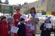 Дети подготовительной к школе группы №9 МБДОУ "ЦРР-д/с №46 "Золушка" с воспитателем Бондаренко А.Г. и воспитателем по обучению детей татарскому языку Нугмановой Ф.М. провели акцию "Мин татарча сөйләшәм". Воспитанники приветствовали прохожих на татарском языке, беседовали с ними, выстраивали диалоги и вручали флажок с названием акции, в знак участия.