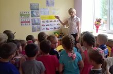 2 сентября 2015 года педагог-психолог Корчагина А.Р. провела первое занятие театрального кружка "Любимые сказки", где дети познакомились с видами театра (настольный, перчаточный, теневой, на фланелеграфе) и некоторыми профессиями (артист, кукловод). Дети узнали о первоначальных творческих проявлениях в музыкально-игровой деятельности: мимике, голосе, жестах, пантомимике, смогли использовать полученные знания в творчестве, обыграли этюды.