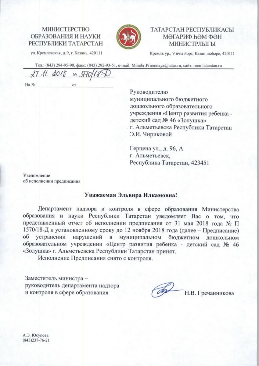 Муниципальное бюджетное дошкольное образовательное учреждение “Центр развития ребенка – детский сад № 46 “Золушка” г. Альметьевска Республики Татарстан / Муниципаль бюджет мәктәпкәчә белем бирү учреждениесе Әлмәт шәһәре Татарстан Республикасы “Баланың сәләтен үстерү үзәге - 46 нчы “Көл кызы” балалар бакчасы”