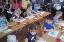 Сегодна в детском саду педагоги Миндубаева Рамиля Тагировна и Ахтямова Лениза Ринатовна поделились своим опытом работы с педагогами из ДОУ г.Альметьевска. Были показаны занятия , где дети инсценировали русскую народную сказку "Колобок" на татарском языке, украшали макеты птиц разноцветной солью, пели песни и путешествовали по лесу.