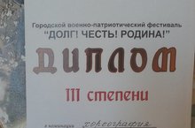 20 мая 2016 г. в городском парке культуры и отдыха был организован городской военно-патриотический фестиваль "ДОЛГ! ЧЕСТЬ! РОДИНА!", в котором приняли участие наши педагоги. Музыкальные руководители Хакимова Айгуль Равилевна, Газизянова Альбина Рафисовна, хореограф Шилькова Анастасия Николаевна, воспитатель Салахова Фирюзя Мансуровна получили диплом III степени в номинации "Хореография" и диплом III степени в номинации "Вокал" (муз.рук. Хакимова А.Р,). ПОЗДРАВЛЯЕМ!!!