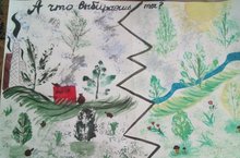 Природа глазами детей 09.07.2018 Воспитатель первой младшей группы, Замилова Вера Михайловна вместе со своим воспитанником Рамазановым Демидом нарисовали рисунок на конкурс "Природа глазами детей", который был выполнен в технике "оттиск" различными материалами (листьями растений, скомканной бумагой).