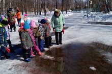 Согласно планирования воспитательно-образовательной работы с детьми старшего возраста была проведена целевая прогулка в городской парк с целью формирования представления о весенних изменениях в природе.
