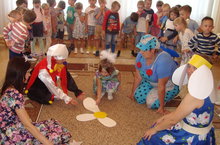 Музыкальный руководитель Нотфуллина С.Б. провела развлечение для детей средней и старшей групп "Праздничное гадание на ромашке", приуроченное к Дню семьи, любви и верности. В празднике активное участие приняли воспитатели и младшие воспитатели данных групп. Дети активно участвовали в конкурсах и эстафетах, шутили и веселились вместе с героями праздника: клоуном Бантиком, Феей праздника, Ромашкой и Карлсоном.