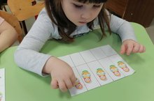 Ребята 2 мл. группы "Шалунишки" на занятии по математике учились сравнивать две равные группы предметов способом приложения.