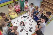 Ребята подготовительной группы "Смешарики" на занятии по аппликации научились вырезать фигуру пингвина по контуру.