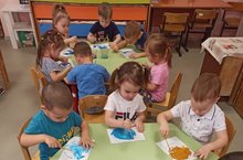 Ребята средней группы "Почемучки" на занятии по аппликации учились вырезать круг из квадрата, срезать у квадрата углы.