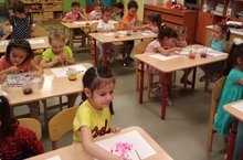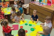 Ребята первой младшей группы "Кнопочки" лепили ягодки для птичек.