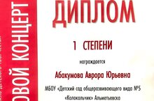 Воспитанница второй младшей группы Абакумова Аврора принимала участие в фестивале детского творчества «Фронтовой концерт», посвященному 9 мая и заняла первое место.