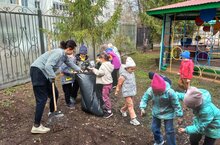 Дети старшей группы №11 совместно с родителями продолжают субботник под девизом "Очистим планету от мусора".#Эковесна2024