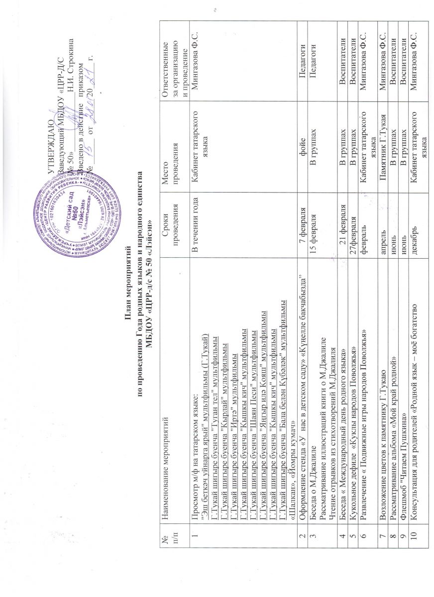 План о проведении мероприятий посвященных Году родных языков и народного единства