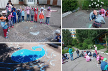 28 июня была организована выставка рисунков на асфальте «Ура, лето!» Ребята с большим удовольствием рисовали мелом на асфальте кусочки лето.