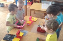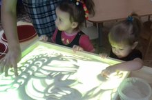 Наши самые маленькие - воспитанники адаптационной группы "Радужка" уже готовы к детскому саду. Они и рисуют на песке, и лепят, и поют, и танцуют.... А помогают им во всем- мамочки...