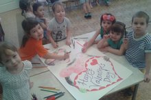 Ребята делали яркие, красочные валентинки друг другу в подарок, создавая теплую и радостную атмосферу праздника. Каждый был счастлив порадовать товарища. В довершении праздника , дети разукрасили праздничный плакат , чтобы порадовать своих родителей. Ведь в такой светлый день и взрослые нуждаются с частичке счастья и дети с радостью готовы его дарить.
