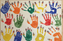 Во 2 группе прошло занятие «Рисование с элементами аппликации». Детям очень понравилось оставлять свои отпечатки пальцев и с азартом приклеивали наклейки с изображением папы, мамы, бабушек и дедушек и себя .