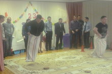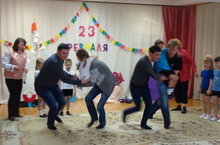 18 февраля в средней группе №2 прошло празднование 23 февраля совместно с папами. Дети с папами соревновались в различных конкурсах: бег в мешках, перетягивание каната и т.д.. В конечном итоге папы были награждены аппликационными открытками, а дети медалями.