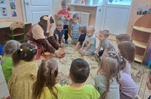 Ребята совместно с воспитателями побывали в гостях у сказки " Три медведя". Они активно отгадывали загадки, вместе с Мишуткой поиграли в игры "Посуда для трех медведей", " Собираем цветы для мамы Мишутки" "Украшаем коврик для папы Мишутки". Провели игровой самомассаж сосновыми шишками, и подарили Мишутке украшенные тарелочки. Путешествие прошло весело, увлекательно и познавательно для детей.