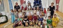 Новый год - это сказочный праздник, любимый праздник всех детей. Его долго ждут, веря в сказку и чудо. В предверии Нового года прошёл утренник. В программе были танцы, песни, игры, дети рассказали стихи. На новогоднем празднике дети выступили перед родителями и показали сказку "Снежный колобок". В конце праздника Дед Мороз и Снегурочка подарили ребятам подарки.