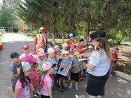 13 июля в детском саду №51 "Радуга" прошло мероприятие, направленное на профилактику дорожно-транспортного травматизма и снижение аварийности с участием несовершеннолетних. Основной целью проведения мероприятия является: формирование представлений детей о правилах дорожного движения и дорожных знаках. На мероприятие был приглашен инспектор О ГИБДД. Совместно с сотрудником ГИБДД были проведены беседы для детей о ПДД в игровой форме. Дети отгадывали загадки, поиграли в игры: "Светофорик", "Собери знаки", "Такси", "Ловкий водитель", игра "Разрешается - запрещается", провели эстафету на самокатах. Результатом проведения мероприятия является закрепление знание детей правил дорожного движения.