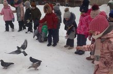 Подкормка птиц зимой особенно необходима, поскольку они очень сильно страдают от недостатка пищи и холода, часто погибают. Дети группы 14 "Муравьишки" заботятся о птицах, ежедневно их подкармливая.