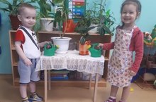 В первой младшей группе №9 с помощью воспитателей прививается умения выполнять простейшие трудовые действия поливать растения, протереть листья влажной тряпкой. -