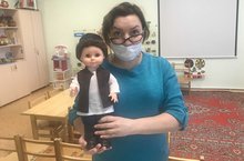 Воспитатель по обучению детей татарскому языку Тагирова Зульфия Замиловна вместе с интерактивной куклой-мальчиком Батыром посетили детей старшего возраста группы №12 .