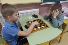 Настольные игры давно уступили место компьютерным, за которыми дети готовы сидеть часами. Между тем, машина не заменит непосредственного, живого общения с ребёнком. Дух партнёрства, товарищества, а позже и соперничества, которое возникает во время настольных интеллектуальных игр, сложно переоценить. Игры в шашки, уголки, домино хорошо знакомы воспитанникам логопедической подготовительной к школе группы N 8 . Дети с речевыми нарушениями по своей природе часто очень подвижны и активны, а эти волшебные игры ненавязчиво формируют у них такие качества, как усидчивость, сосредоточенность и внимание.