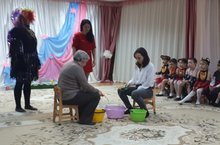 В подготовительной группе №2 мам и бабушек пришли поздравить папуасы, самураи, и весёлые обезьянки
