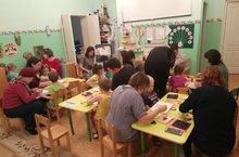 В средней группе № 5 было проведено открытое занятие с родителями по нетрадиционной технике рисования. Тема занятия «Теремок». Метод- ниткография . Взрослые вместе с детьми делали домики для зверей. Занятие прошло в тёплой и дружеской обстановке.