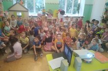 А в конце развлечения сказочный персонаж "Человек рассеянный с улицы Басейнной" подарил детям книжки-раскраски о правах ребёнка. -