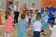 В средней группе N4 прошел осенний утренник. На дворе хододно, а у нас зале царила теплая и веселая атмосфера. Дети пели песни об осени, играли в веселые игры, читали стихи, а главной героиней праздника была сама "Фруто-няня". Она подарила детям подарки и пожелала крепкого здоровья на весь учебный год. Детские осенние праздники - это море улыбок и веселья, ведь хоть и говорят, осень - унылая пора, но дети как никто другой способны радоваться золотистым опавшим листьям под ногами и дождику, под которым так интересно гулять под зонтиком