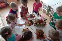 Сегодня воспитанники старшей группы №13 "Дружные ребята" рассматривали поделки на тему: "Что нам осень принесла" сделанные совместно с родителями!Дети рассказывали что делали, из чего делали, с кем они делали, было столько впечатлений, эмоций и радости в глазах детей.