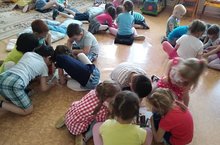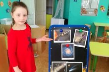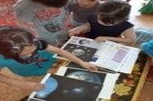 В знаменательный для нашей страны день День космонавтики старшая группа №7 пригласила ребят группы №12 к себе для увлекательного путешествия по космическим просторам Вселенной. Ребят увлекла беседа - презентация "Детям о космосе", оформленная групповая комната в космическом стиле - огород на подоконнике, книжная выставка, выставка рисунков и аппликаций и поделок, изготовленных руками детей и их родителей. В ходе путешествия дети проявили любознательность, свои познания в просторах Солнечной системы. В завершении путешествия дети, разделившись на группы, участвовали в издании журнала "Космические просторы нашей Вселенной"
