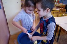 Весьма эффективно включение в ежедневную работу игровых упражнений с водой. Высокая двигательная активность мелкой моторики рук ведёт к улучшению речевой активности, создаётся благоприятный эмоциональный фон.