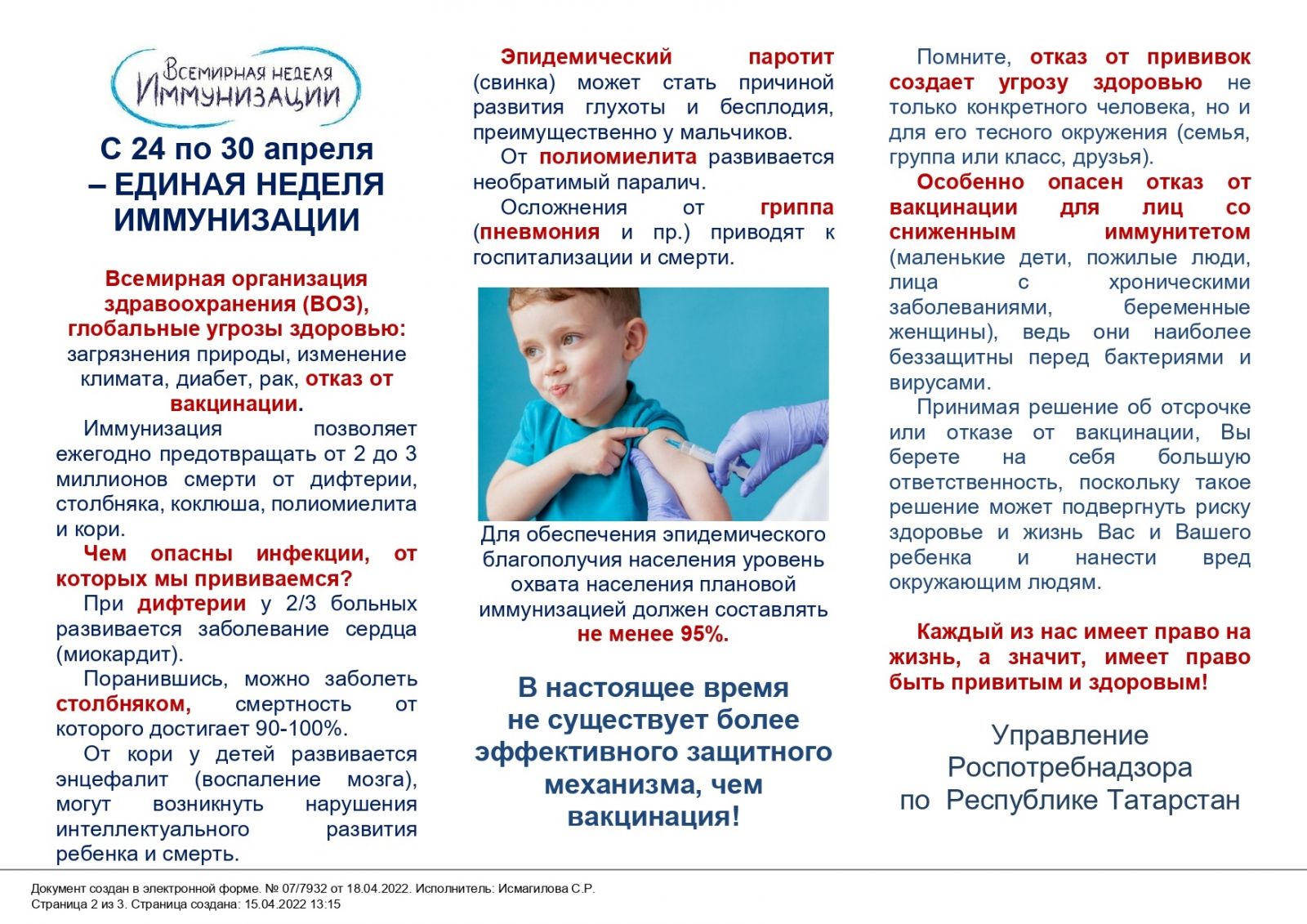 С 24 по 30 апреля – ЕДИНАЯ НЕДЕЛЯ ИММУНИЗАЦИИ