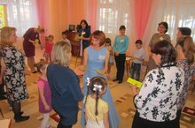 5 апреля 2016 года на базе МБДОУ № 53 «Светофорик» прошло итоговое кустовое методическое объединение музыкальных руководителей № 2 дошкольных образовательных учреждений Альметьевского муниципального района на тему: «Достояние оптимального уровня взаимодействия ДОУ и семьи в воспитании и развитии детей». Главной целью проведения мероприятия стало приобщение детей и взрослых к русскому народному творчеству. Мероприятие открылось встречей гостей в фойе МБДОУ № 53 «Светофорик», где была оформлена ярмарочная выставка самодельных музыкальных инструментов из бросового материала, изготовленных руками родителей воспитанников ДОУ, а также предметов русского народного быта: матрешки, самовары, кухонная утварь в росписи «хохлома», «гжель», куклы в народных костюмах Поволжья и т.д. Встречали гостей согласно русской традиции хлебом и солью сотрудники детского сада: педагог-психолог Маклова Н. А. и воспитатель подготовительной к школе группы Василенко О. О., одетые в русские народные костюмы. А также ярким моментом явилась встреча гостей незаменимыми героями русской ярмарки Скоморохом и Петрушкой – родителями воспитанников средней группы детского сада. Громкие заклички зазывал на фоне русской народной музыки, яркие костюмы, оригинальный грим способствовали поднятию хорошего настроения приглашенных на мероприятие гостей. Веселое представление продолжилось в музыкальном зале, где происходило основное театрализованное действие весенней русской ярмарки в исполнении воспитанников и родителей средней группы. Положительные отзывы прозвучали от руководителя методического объединения Никоновой Е.С., а также других музыкальных руководителей городских ДОУ.