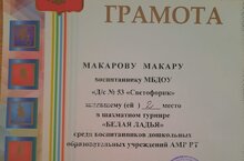 21 мая 2024 года на базе детского сада № 57 прошел городской шахматный турнир "Белая ладья" среди воспитанников ДОУ АМР РТ. Воспитанник нашего детского сада № 53 "Светофорик", подготовительной к школе группы № 6 - Макаров Макар занял 2 место. Поздравляем!!!