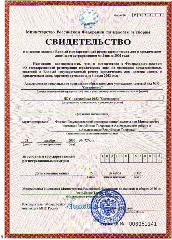 ОГРН (Свидетельство о внесении записи в Единый государственный реестр юридических лиц о юридическом лице, зарегистрированном до 1.07.2002 года)