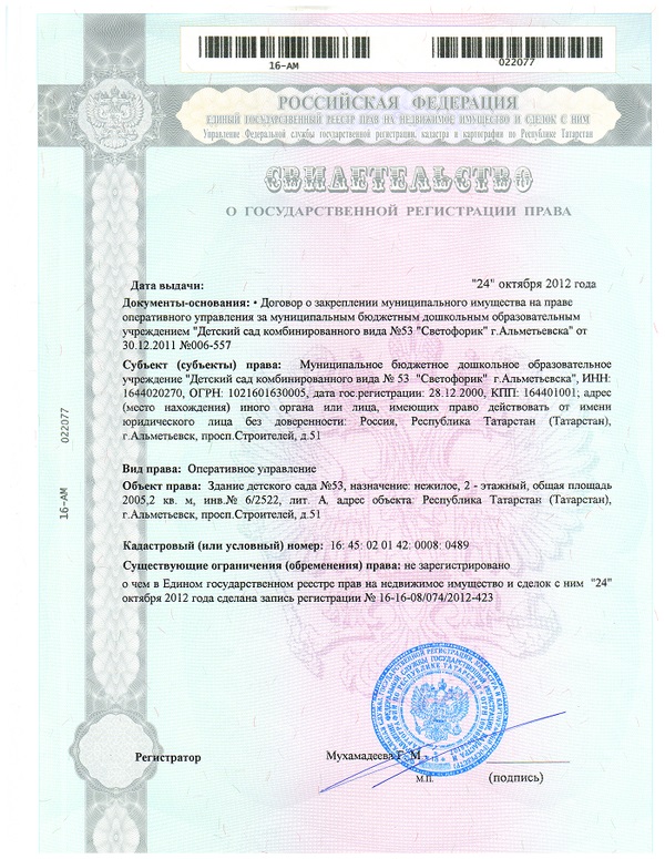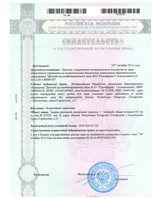 МБДОУ «Детский сад комбинированного вида №53 «Светофорик» г. Альметьевска»/Муниципаль бюджет мәктәпкәчә белем бирү учреждениесе Әлмәт шәһәре "53 нче катнаш төрдәге "Светофорик" балалар бакчасы"