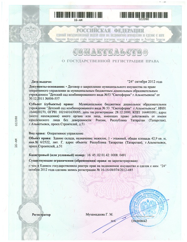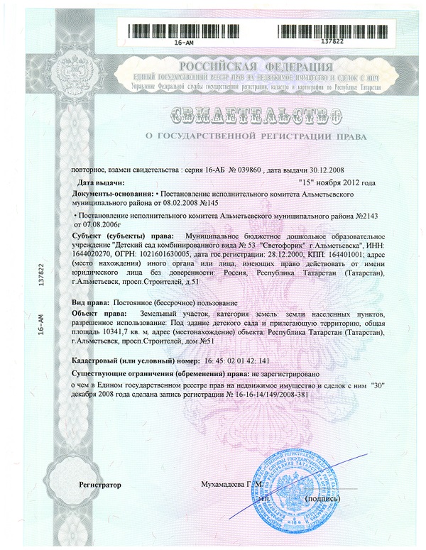 Правоустанавливающие документы//Хаклы урнаштырган документлар