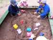 Мы в песочнице вдвоем, из песка построим дом!