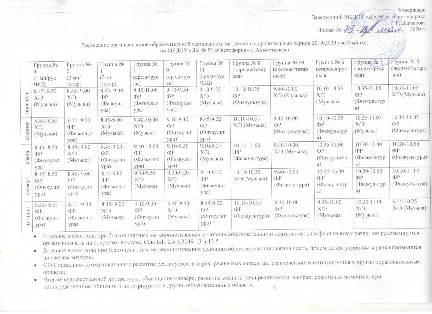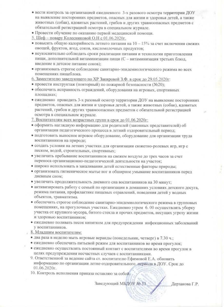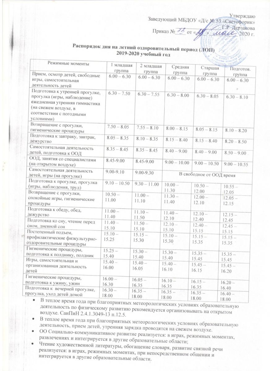 План воспитательно-образовательной работы ДОУ на ЛОП 2020
