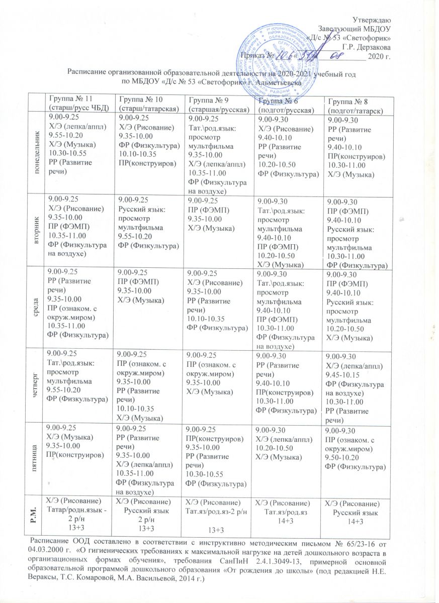 Расписание ООД на 2020-2021 учебный год 1стр 2 стр